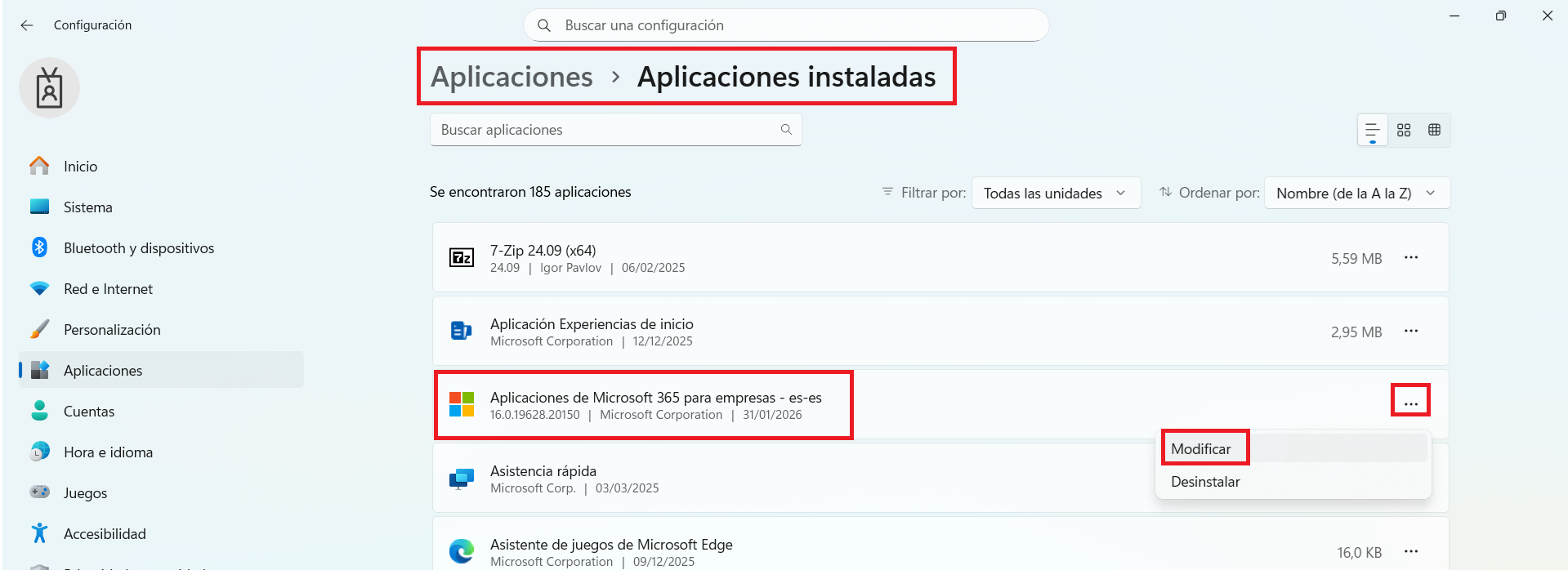 Aunque no uses Microsoft 365 u Office, comprueba si aún así tienes instalados componentes de Microsoft 365 y repara la instalación como hemos indicado en el punto anterior.